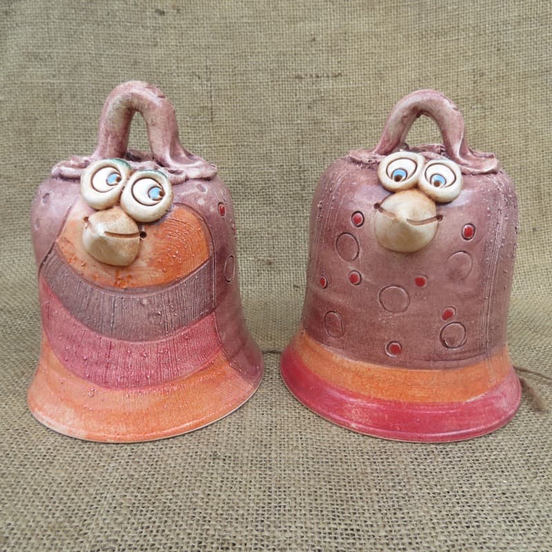 keramický zvonek - pták: výška cca 17 cm, dolní průměr cca 14 cm, barva: růžová, každý kus je originál a může se od uvedené fotografie mírně lišit