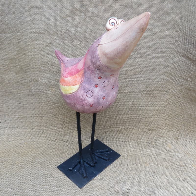 - keramický pták velký - růžový, s nohama